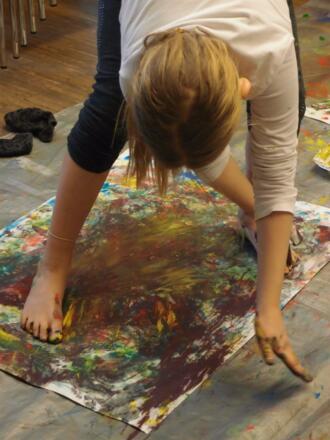 Auf spannende Weise die Ausstellung entdecken uns selbst kreativ sein - Aus Recyclingmaterial stellen wir eigene Stempel und Strukturwalzen her und drucken und rollen, was das Zeug hält.
