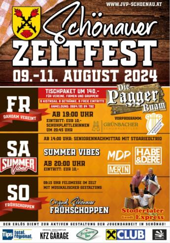 | Preisinformation | siehe https://www.jvp-schoenau.at/zeltfest/ |