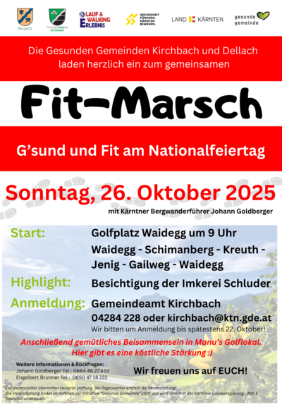 Treffpunkt: 9 Uhr vor dem Gemeindeamt Kirchbach. Anmeldungen jeweils am vortag bis 15 Uhr im Tourismusbüro Tel. 04284 228 25.