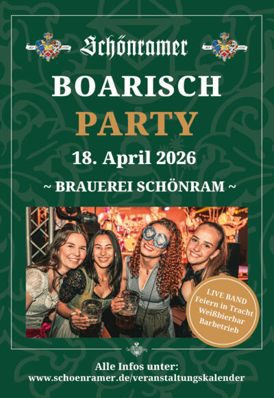 Am 18. April 2026 ab 20:00 Uhr heißt es wieder: feiern, tanzen und genießen – bei unserer Boarisch Party direkt in der Brauerei Schönram!