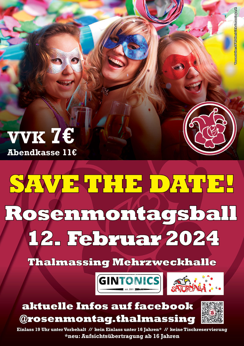 Auch in diesem Jahr findet wieder der Rosenmontagsball in Thalmassing statt. Als Band werden die "Gin Tonics" auftreten.