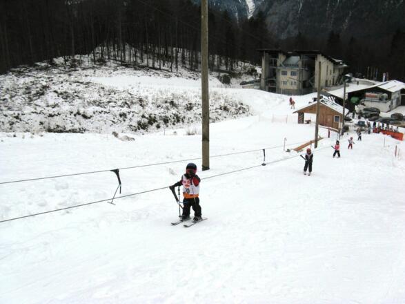 Der Krippi-Park mit seinem Übungslift und Förderband liegt direkt bei der Talstation der Dachstein-Krippenstein-Seilbahn. Das Gelände ist perfekt für Anfänger und Kinder, die ihre ersten Versuche auf Skiern oder Snowboards unternehmen.
