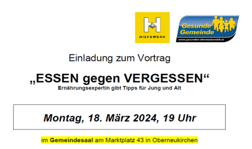Ernährungsexpertin gibt Tipps für Jung und Alt im Gemeindesaal am Marktplatz 43 in Oberneukirchen