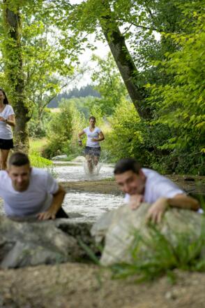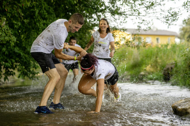 Die Teilnehmer/innen laufen in Teams auf ca. 5 km am wunderschönen Kneippweg und überwinden dabei ca. 15 Hindernisse mit Wasser, Schaum, Farbe, Schlamm, Höhen und Tiefen!