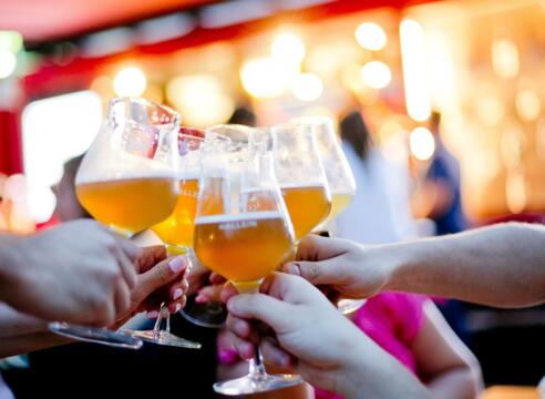 gemeinsam mit einem Biersommelier Biere. Garniert