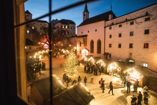 Schon am Weg nach oben tauchen mehr als hundert traditionelle Herrnhuter Sterne die Festungsgasse in ein romantisches Lichtermeer. Viele Einheimische kommen jedes Jahr mindestens einmal auf die Festung, um bei einer Tasse Glühwein den wunderschönen Ausblick über die weihnachtliche Altstadt zu genießen. Beliebt bei Familien ist auch das Rahmenprogramm des Marktes. An allen Öffnungstagen gibt es im Atelier Hödlmoser ein betreutes Kinderprogramm mit Musik, Kekserlbacken, Leseecke und Weihnachtsbasteleien.