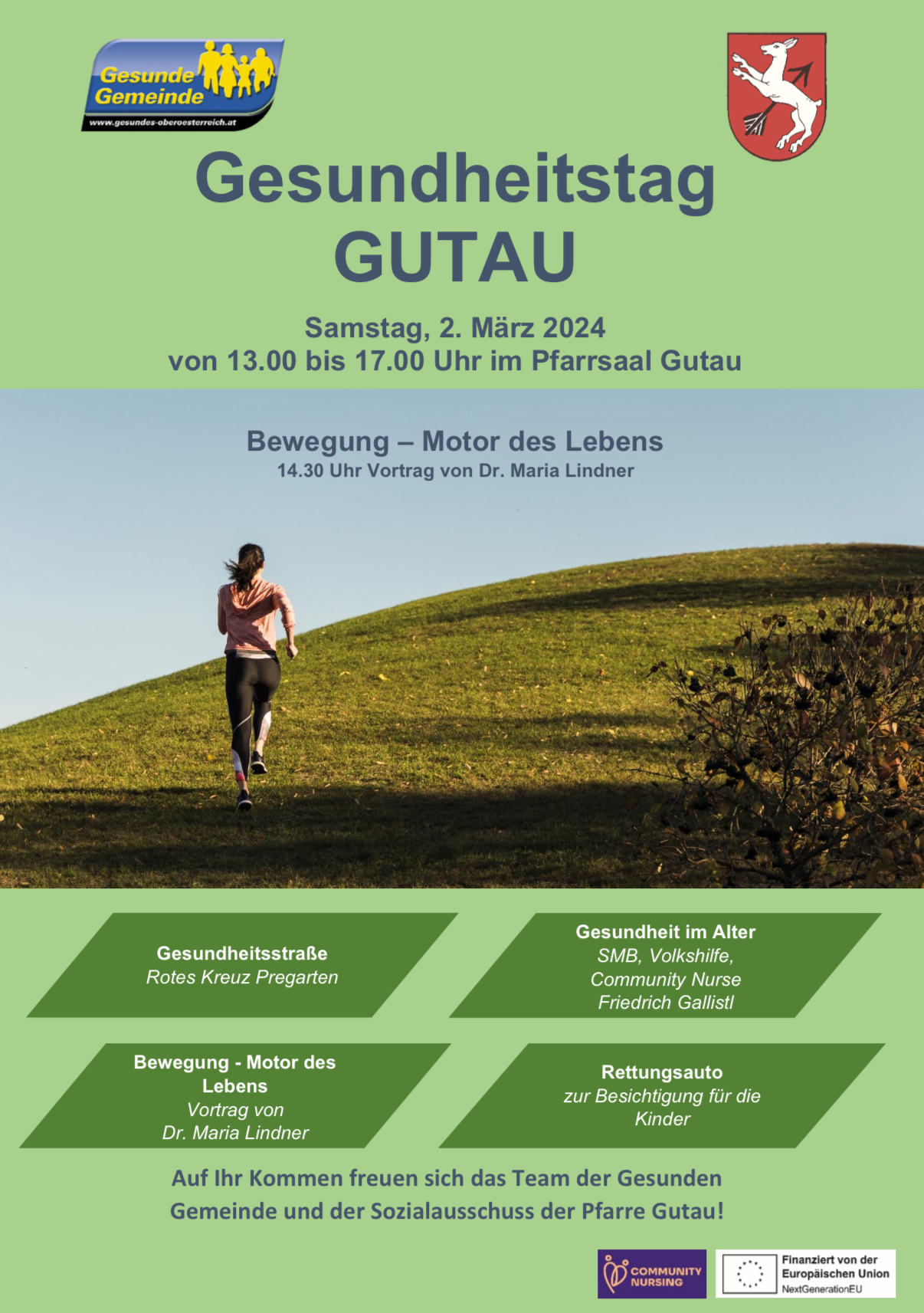Auf Ihr Kommen freuen sich das Team der Gesunden Gemeinde und der Sozialausschuss der Pfarre Gutau!