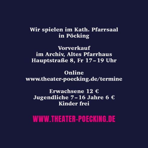Diebischer Spaß im PfarrsaalDie Theatergruppe Pöcking steht ab 1. März 2024 wieder im Pfarrsaal St. Pius auf der Bühne. Abschiedsbrief! Clownsmasken! Autounfall! Betrug! Und: verräterisches Diebesgut, nackte Tatsachen, Verhaftung im Publikum, Eifersucht – und Liebe!Darum geht es dieses Mal im Stück der Theatergruppe Pöcking - „Der entführte Selbstmordeinbruch“ heißt es und verspricht, einigermaßen turbulent zu werden:Das Baugeschäft der Familie Ebner steht kurz vor dem Ruin. Grund genug für die Familie und deren Freund*innen, alles (wirklich alles) zu tun, um das Unternehmen zu retten: eine Entführung (oder zwei? Oder drei??), ein Selbstmord (der einzig logische Ausweg), ein Einbruch (ins Herz der dörflichen Demokratie).Die (linke) Hand des Gesetzes, der örtliche Polizeiwachtmeister Dimpfl, hat gehörig was zu tun mit den mal kreativen, mal kriminellen Ideen der Beteiligten und verhaftet schlichtweg die halbe Familie. Doch zum Glück gibt es da noch den Lehrbuben Thomas „Tomi“ Klein…