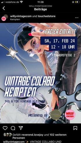 Ihr habt die Möglichkeit einen 50€ Gutschein für das Event zu gewinnen, den ihr dann vor Ort einlösen könnt. Checkt dazu die Teilnahmebedingungen auf unseren Insta-Accounts @willyvintagecom @touchedstore