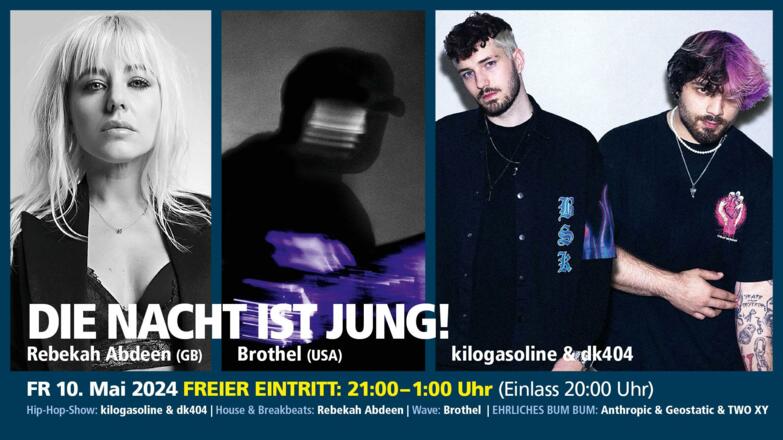Freitagabend, ab 20 Uhr: Die Nacht ist jung! Konzerte mit Hip-Hop, House, Wave, Drum&Bass