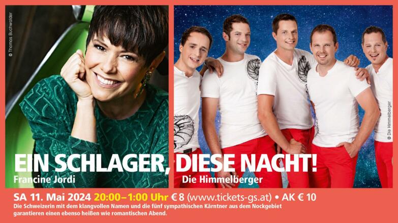 Samstagabend, ab 20 Uhr: Ein Schlager, diese Nacht Konzerte mit Die Himmelberger, Francine Jordi
