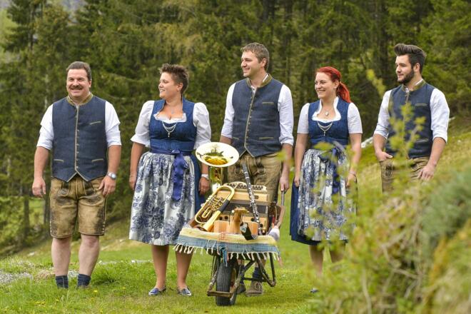 Der Trachtenverein D'Hüttenkogla und die Silberkrug Musi tanzen, musizieren und sorgen damit für einen bunten Abend im Bärenhof Bad Gastein.