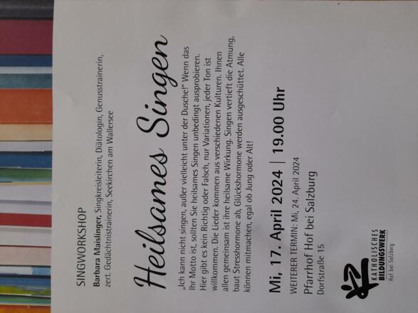 „Ich kann nicht singen, außer vielleicht unter der Dusche!“ Wenn das Ihr Motto ist, sollten Sie heilsames Singen unbedingt ausprobieren. Hier gibt es kein Richtig oder Falsch, nur Variationen, jeder Ton ist willkommen. Die Lieder kommen aus verschiedenen Kulturen. Ihnen allen gemeinsam ist ihre heilsame Wirkung. Singen vertieft die Atmung, baut Stresshormone ab, Glückshormone werden ausgeschüttet. Alle können mitmachen, egal ob Jung oder Alt!