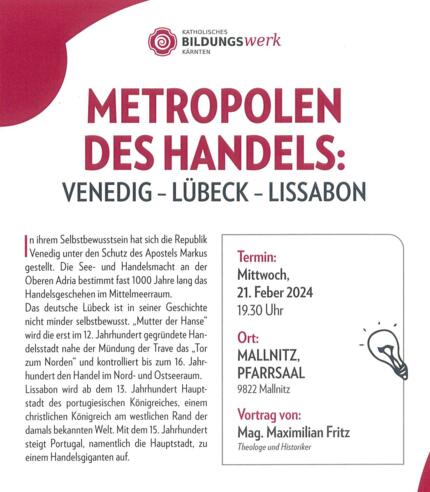 Mittwoch, 21. Feber 2024, 19.30 Uhr, Pfarrsaal Mallnitz