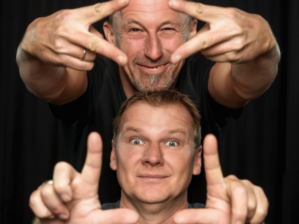 Außerdem sind Fredi Jirkal und Pepi Hof- beide: in Wien geboren, seit langem Wahlniederösterreicher, das 2. Mal verheiratet, Väter, so um die 50 Jahre alt und vor allem Physisch schön und Optisch gesund. Auf jeder Bühne- wie Pech und Schwefel- extrem entzündlich!