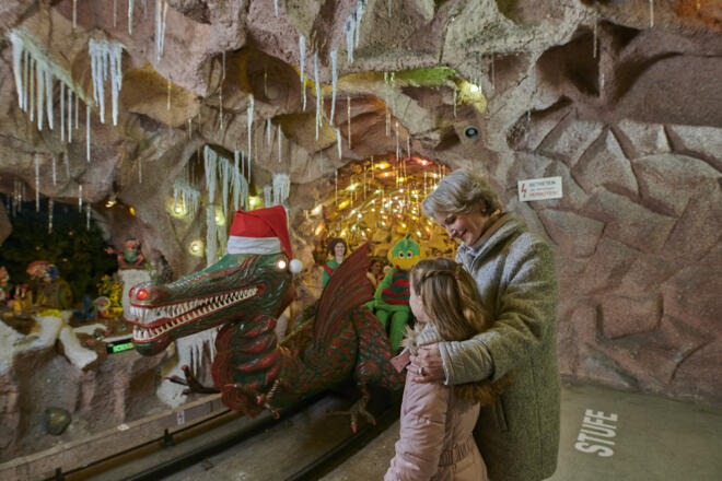 Lenzibald und die Bewohner der Grottenbahn laden am 24. Dezember zum gemeinsamen Warten auf das Christkind ein. Die letzte Drachenfahrt findet um 14.30 Uhr statt. Jedes Kind erhält nach dem Besuch eine kleine süße Überraschung.