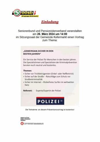 Sicher vor Trickbetrügereien (Enkel- oder Neffentrick)Sicher auf der Straße - Ratschläge zum Schutz vor StraßenkriminalitätSicher im InternetVA: Seniorenbund und Pensionistenverband