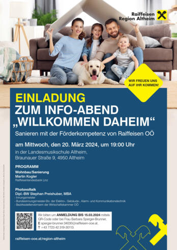 | Preisinformation | Wir bitten um ANMELDUNG BIS 15.03.2024 bei Frau Barbara Sperger-Brunner sperger-brunner.34030@raiffeisen-ooe.at oder +43 7723 42 319-30113 |