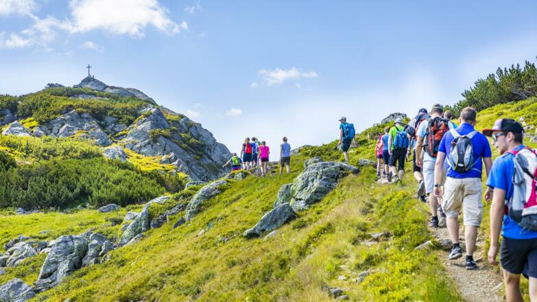 Gleich zu Beginn dürfen wir’s uns am Sessellift „Starjet 1&2“ gemütlich machen, denn der bringt uns den Berg hoch und erspart uns die ersten Höhenmeter. Auf 1700 m angekommen startet unsere Wanderung und führt uns auf den imposanten Gipfel des Grießenkarecks. Von dort aus geht's über das Hochplateau zur Frauenalm, wo wir eine Stärkung zu uns nehmen können. Genießt das tolle Panorama und die grandiose Aussicht!
