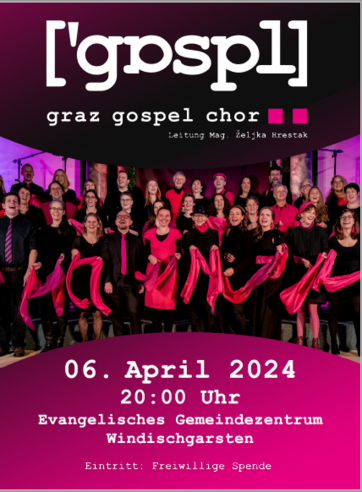 Wir freuen uns auf ihren Besuch, beim Konzert im Evang. Gemeindezentrum Windischgarsten am 05.04.24 um 20 Uhr.