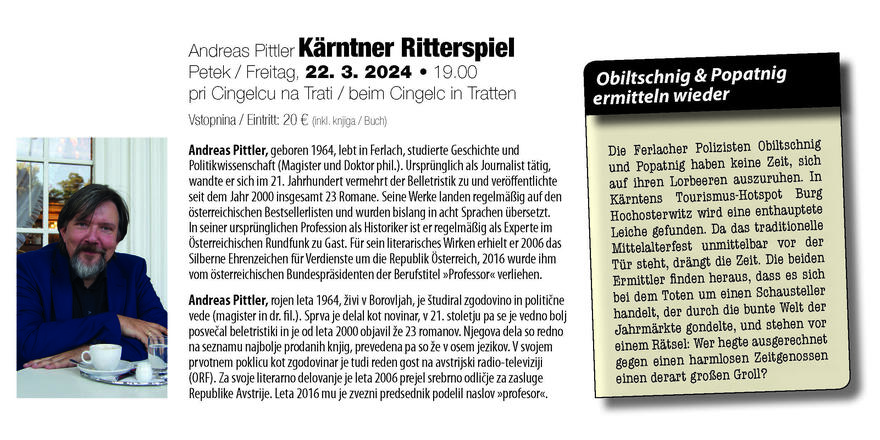 Herzliche Einladung zur Buchpräsentation "Kärntner Ritterspiel" - Kriminalroman von Andreas Pittler