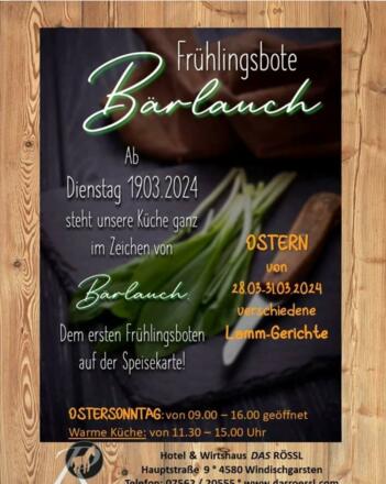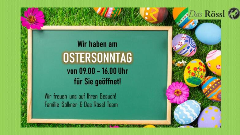 OSTERSONNTAG: von 9:00 -16:00 Uhr geöffnet, Küche von 11:30 - 15:00 Uhr