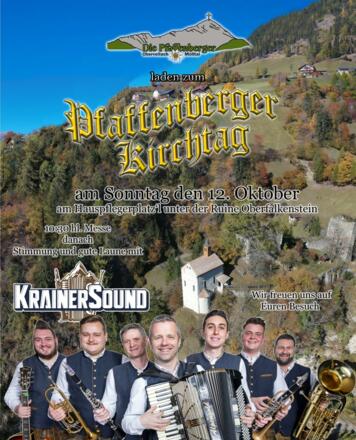 Herzliche Einladung zum Pfaffenberger Kirchtag am 12.10 mit Gottesdienst um 10:30 in der Kirche "Hl. Johannes dem Täufer" und anschl. Unterhaltung am Hauspflegerplatz´l mit Krainersound.