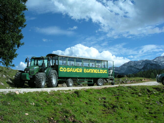 Der Bummelzug bzw. ein Almtaxi fährt über Forststraßen durch die schöne Landschaft auf ca. 1.400 m Seehöhe. Ausgangspunkt für eine Wanderung sind die Schleifsteinhütten. Von dort geht es durch das wildromantische Löckenmoos. Das einzigartige Deckenhochmoor mit dem kleinen Moorsee bietet für Groß und Klein ein wahres Erlebnis. Bei einem Rundgang durch das Moor, mit dem imposanten Ausblick auf die umliegende Bergwelt, lässt sich allerhand erfahren und erleben. Eine Flora und Fauna wie man sie in dieser Umgebung findet, ist einzigartig. Entlang des markierten Weges durch die „Latschen“ (Bergkiefer) geht, vorbei an dem kleinen Löckensee, dem Gosaukamm entgegen. Auf dem Weg findet ihr immer wieder Tafeln mit interessanten und wissenswerten Details zur örtlichen Tier- und Pflanzenwelt.