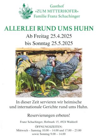 In dieser Zeit servieren wir heimische und internationale Gerichte rund ums Huhn.