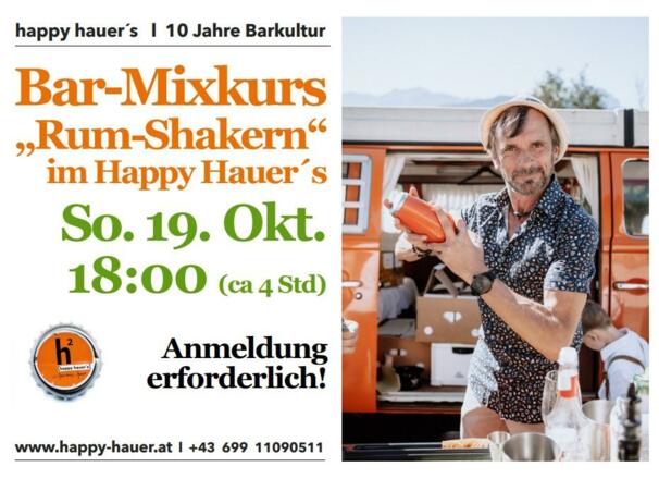 Ob Mojito, Caipirinha oder ein erfrischender Tequila Sunrise – beim Bar-Mixkurs im Happy Hauer’s dreht sich alles um das gekonnte Mixen leckerer Drinks in entspannter Atmosphäre. Am Sonntag, dem 19. Oktober um 18:00 Uhr hast du die Gelegenheit, in die Welt der Barkultur einzutauchen. In rund vier Stunden lernst du die Grundlagen der professionellen Cocktailzubereitung – vom richtigen Umgang mit dem Shaker bis hin zu kreativen Garnituren.