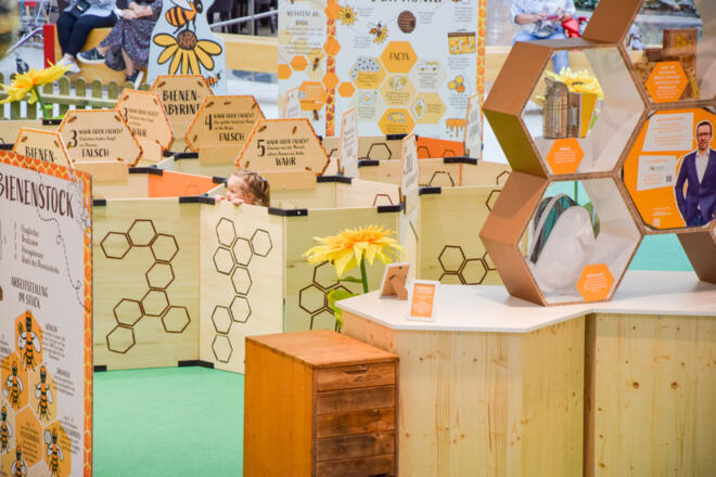 Diesen April dreht sich in der WEBERZEILE als um die fleißigen Insekten: Von 8. bis 27. April gastiert eine interaktive Bienen-Ausstellung im Einkaufszentrum.