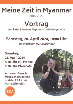 Am Samstag, 20. April 2024 berichtet der Franziskanerpater Johannes Unterberger im Pfarrheim Maria Schmolln über seine Zeit als Missionar in Myanmar.