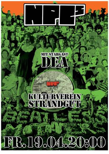 Bass, Gitarre, Schlagzeug, Gesang und Eigenkompositionen mit englischen Texten.Bilder des Schlagzeugers Stefan Bruneder sind bis 25. April an den Wänden des Strandguts zu sehen.