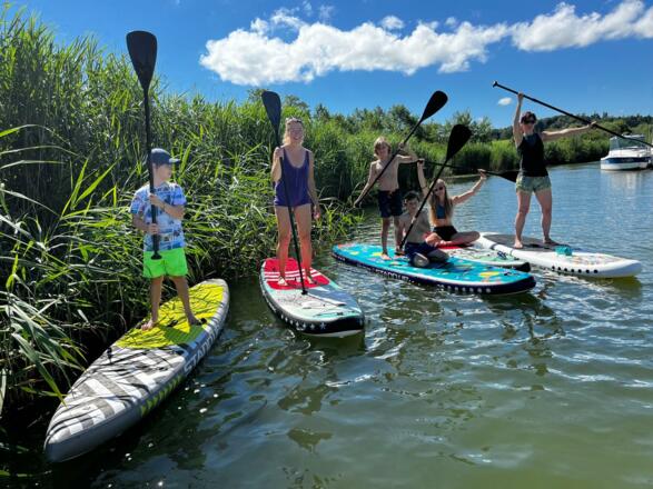 - Grundsätzlich kann jede:r - Anfänger und Fortgeschrittene – an der Tour teilnehmen. Wir möchten jedoch darauf hinweisen, dass es von Vorteil ist und zu einer guten Stimmung in der Gruppe beiträgt, wenn man bereits einmal auf einen Stand-Up-Board gestanden ist und/oder generell über eine gute Grundkondition/Balance verfügt.
