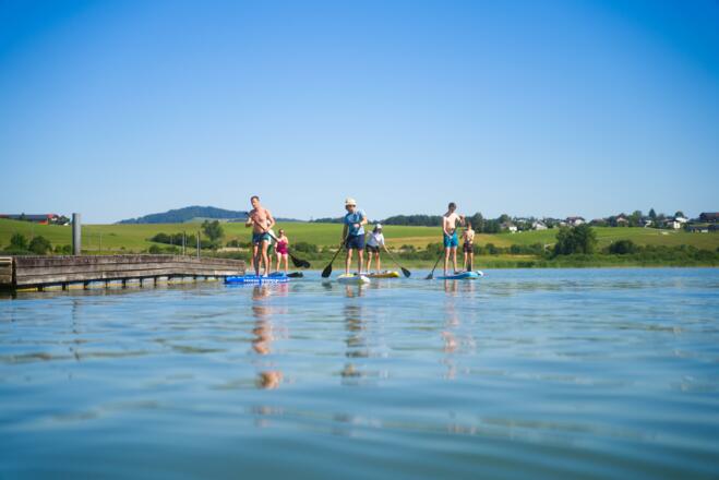 Treffpunkt: Strandbad Seekirchen – beim Raum der Wasserrettung | SUP-Boards können hier auch aufgepumpt werden