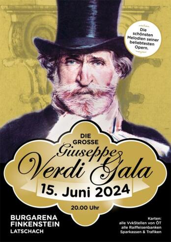 Die einzigartige Gala (70 Künstler) bietet einen kurzweiligen, spannenden Streifzug durch mehr als 9 der berühmtesten Opern Giuseppe Verdis: Spannende Ouvertüren, mitreißende Intermezzi sowie weltberühmte Szenen aus Nabucco, Macbeth, La Traviata, Don Carlos, Der Troubadour, Sizilianische Vesper, Rigoletto, Macht des Schicksals und I Lombardi. Das Verdi Gala-Orchester sowie der Verdi Gala-Chor und internationale Solisten unter der Leitung von Andrej Skorobogatko sorgen für exzellente musikalische Stimmung und entführen in einen Abend voll von herrlicher Musik in der eindrucksvollen und einmaligen Atmosphäre der Burgarena Finkenstein.