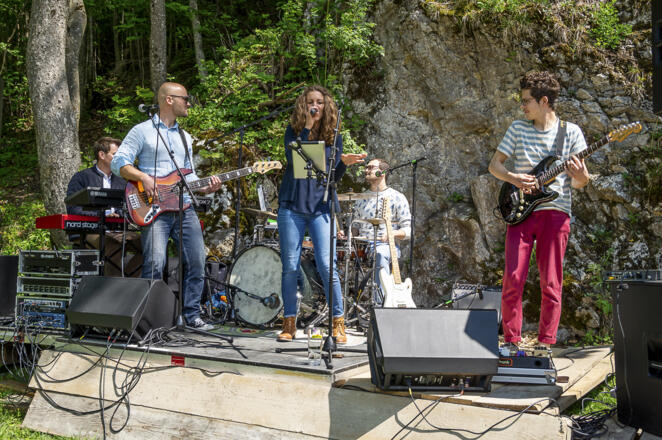 Gesang, Drehorgel, Saxophon, Gitarre, Akkordeon und Kontrabass. Das Tanzparkett