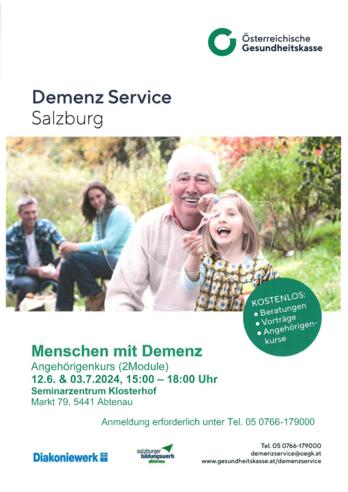 Modul 1: Kommunikation: Altersvergesslichkeit vs. Demenz - Anzeichen. Tipps zur Verständigung, Hinweis auf die Wichtigkeit der Selbstfürsorge für Angehörige und Darstellung der Angebote des Demenz Service Salzburg