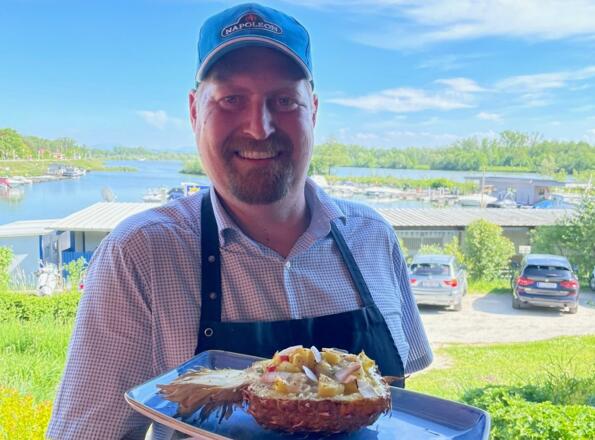 Grillkurs am donau-Standl mit Tom grillt.