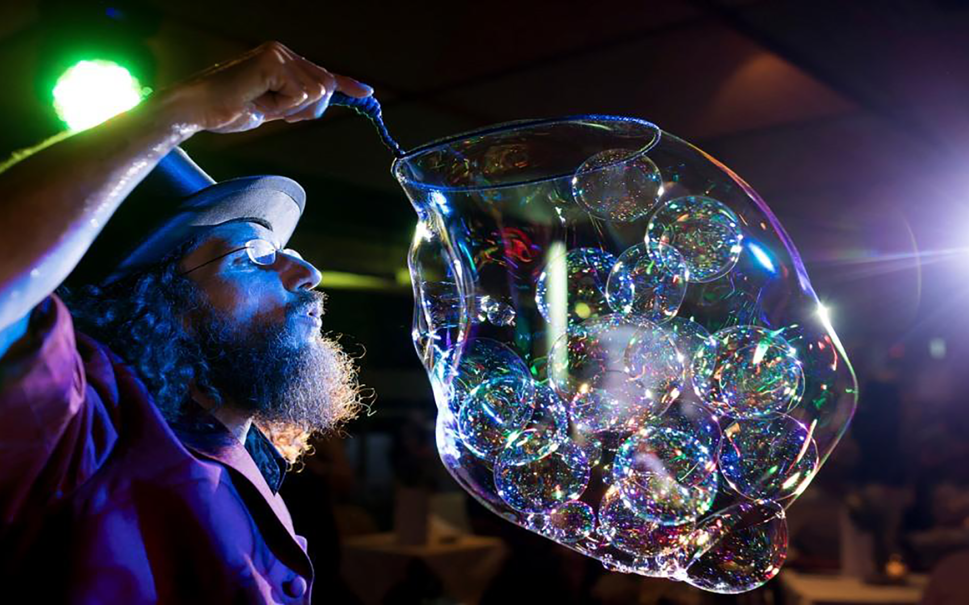 18.00 Uhr Seifenblasenkünstler Dr. Bubbles Aramis Gehberger "hautnah" auf der Panoramaterrasse