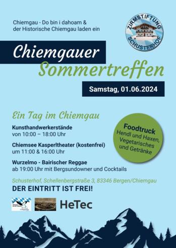Die beiden großen Chiemgauer Facebook-Gruppen „Chiemgau – Do bin i dahoam“ und der „Historische Chiemgau“ laden ihre Mitglieder - 15.500 und 8.400 – und alle die den Chiemgau ins Herz geschlossen haben, zu einem gemeinsamen Tag in Bergen ein, auf dem Schusterhof am Schellenberg.
