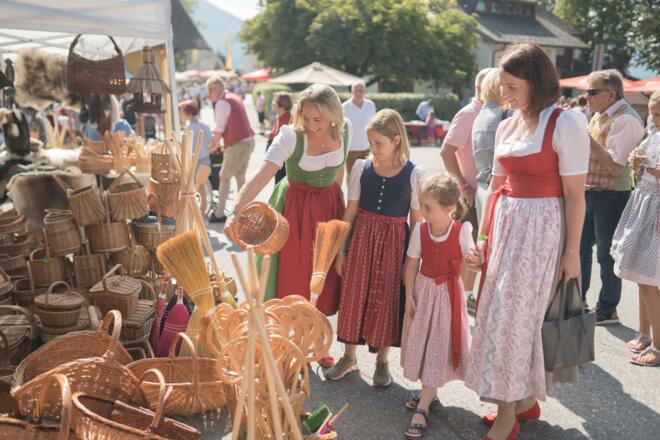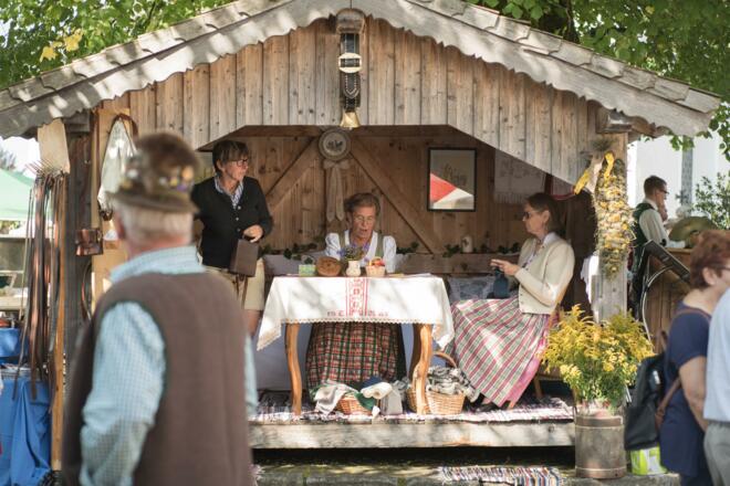 Bei den Ständen gibt es Vorführungen der alten Handwerks - u. Bauernkunst wie: Stricken, Rechen machen, Messer schleifen, Almkranzl binden, Federkielsticken, Korbflechten, Teppich weben, Porzellan bemalen…