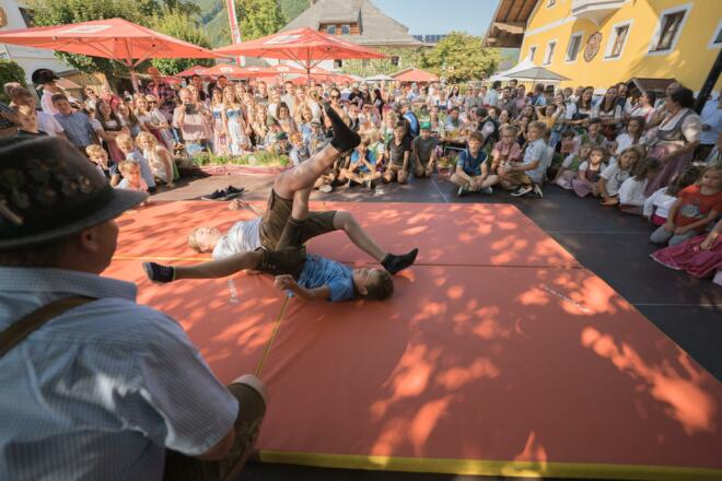 Als sportliche Attraktion wird am Nachmittag auf der Festbühne der traditionelle "Fuaßhakl" Wettbewerb für Jung und Alt stattfinden.