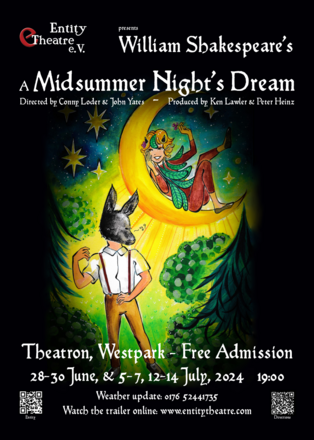 This summer, Entity Theatre presents William Shakespeare’s best-loved comedy A Midsummer Night’s Dream at Theatron, Westpark.