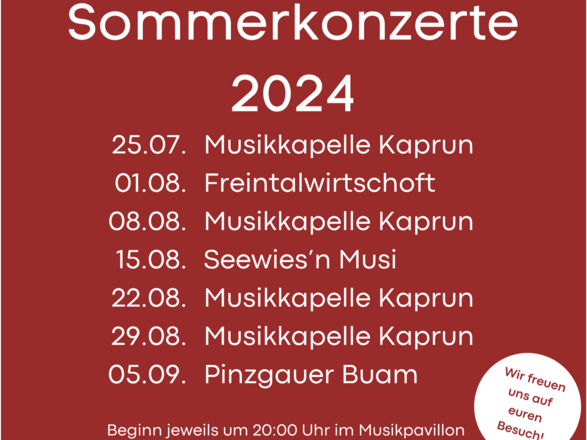 Die Musikkapelle Kaprun wechselt sich auch heuer wieder mit verschiedenen Musikgruppen aus Nah und Fern ab und stellt ein abwechslungsreiches Programm auf die Beine. Geboten wird ein bunter Mix aus traditioneller Blasmusik bis hin zu modernen Gustostückerl.