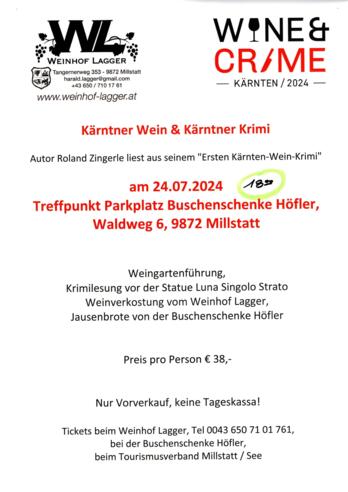 Autor Roland Zingerle liest aus seinem "Ersten Kärnten-Wein-Krimi".