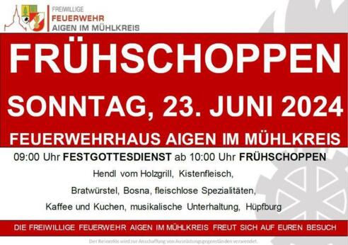 Frühschoppen der FF Aigen am Sonntag, den 23. Juni 2024