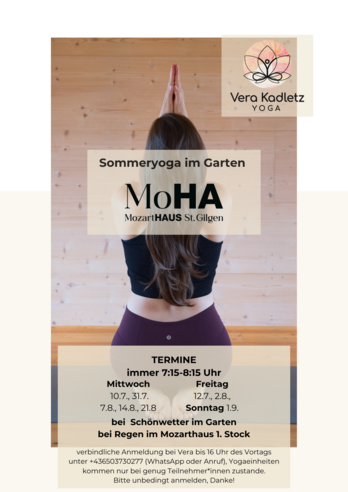 Das Programm findet bei Schönwetter im Garten des Mozarthauses statt. Bei Regen wird die Veranstaltung ins Mozarthaus in den 1.Stock verlegt.