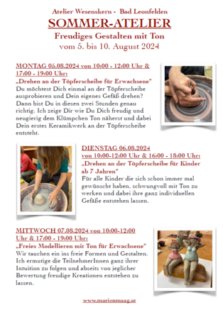 Freudiges Gestalten mit Ton vom 5. bis 10. August 2024