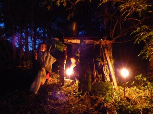 Wir gestalten den nächtlichen Zauberwald mit geheimnisvollen Lichtern, wilden Gestalten und unheimlichen Geräuschen.